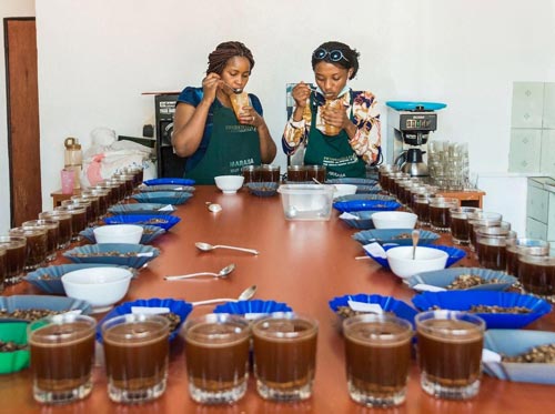 Die Qualität unserer 100% Arabica, single-origin Bourbon-Bohnen steht für uns an erster Stelle. Eugenie, die erfahrene Cupperin von RWASHOSSCO, prüft deswegen regelmäßig und kritisch die gerösteten Bohnen. Bei Cuppings nach dem SCA-Standard erzielen unsere Kaffees stets einen Score von 83 bis 88 (von 100) – die Kaffeekenner*innen unter uns wissen, dass dies Spezialitätenkaffee klassifiziert.