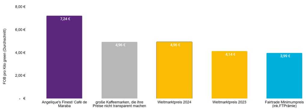 In 2024 betrug der Free on Board (FOB) Preis pro Kilo für Angelique’s Finest und für Café de Maraba 7,24 €.
