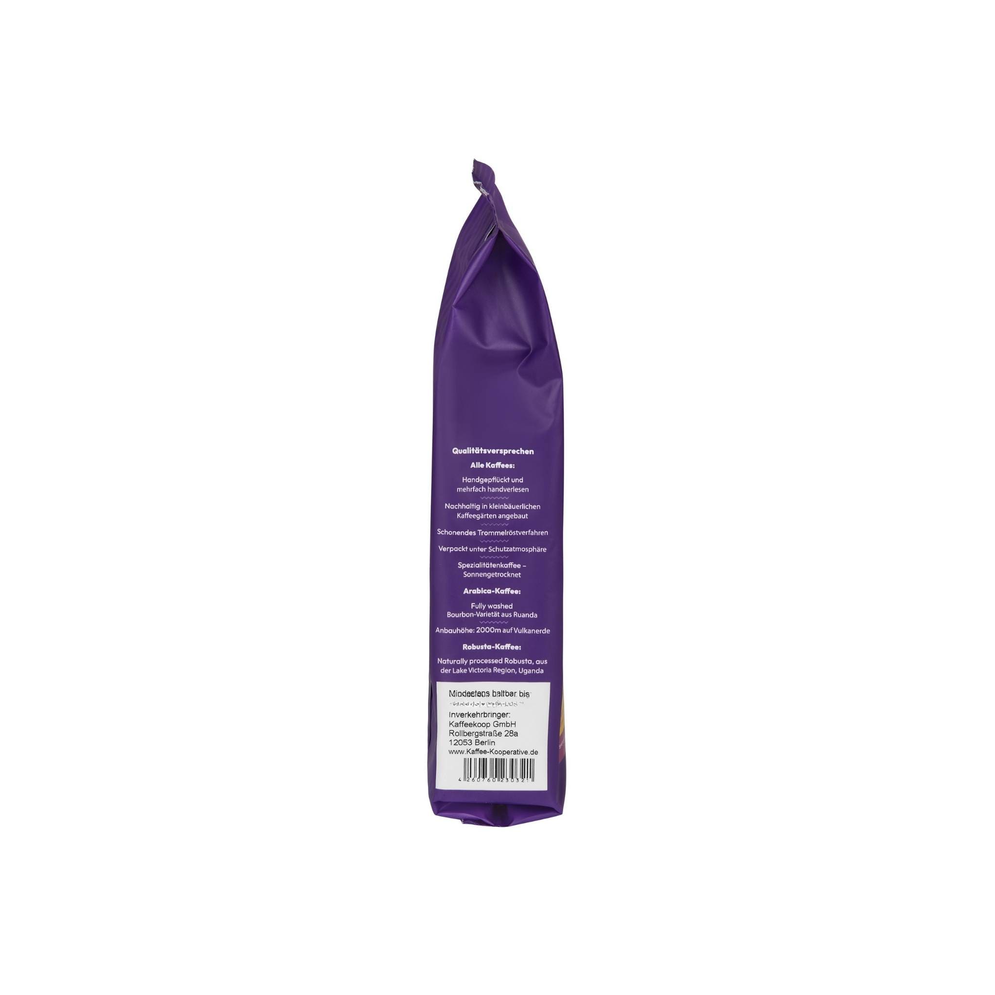 - Angelique’s Finest, Fairtrade Espresso Blend: Sorgfältig ausgewählte Kaffeebohnen, 60% Arabica aus Ruanda und 40% Robusta aus Uganda, schonend im Trommelröster veredelt. Ein ausgewogener, dunkel gerösteter Espresso, angelehnt an klassisch-italienische Röstungen, aber ohne die Aromenvielfalt zu verlieren, mit starken Röstnoten, angenehmer Süße mit Aromen von Schokolade, Karamell und süßer Orange. Perfekt für Siebträgermaschinen, Vollautomaten, Mocca – Bialettis/Herdkanne