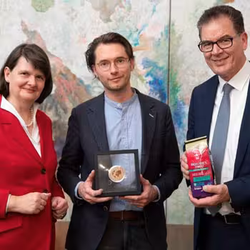 Kaffee-Kooperative.de wurde stellvertretend durch Xaver Kitzinger die EINEWELT-Medaille in Bronze (Nachwuchspreis) von Bundesminister Dr. Müller für verantwortungsvolles Unternehmertum verliehen.