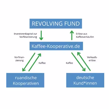 Zur Vorfinanzierung der Kaffeeernte haben wir den Revolving Fund eingeführt. Hierdurch sparen die Produzent*innen die hohen ruandischen Zinsen von bis zu 18% und unseren deutschen Anleger*innen werden Zinsen ausgeschüttet. Der Fund ist bereits mit 100.000 Euro ausgestattet.